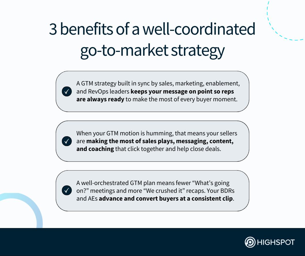 “Robust GTM strategies add significant value for the businesses that put time and effort into developing and then implementing them,” Highspot’s GTM 101 guide noted.