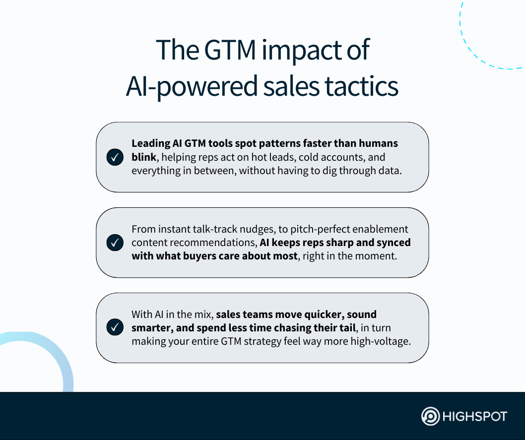 Go-to-market teams that regularly use AI for sales can better anticipate prospect concerns, adjust GTM messaging quickly, and spend more time engaging in meaningful conversations rather than manual research and documentation.