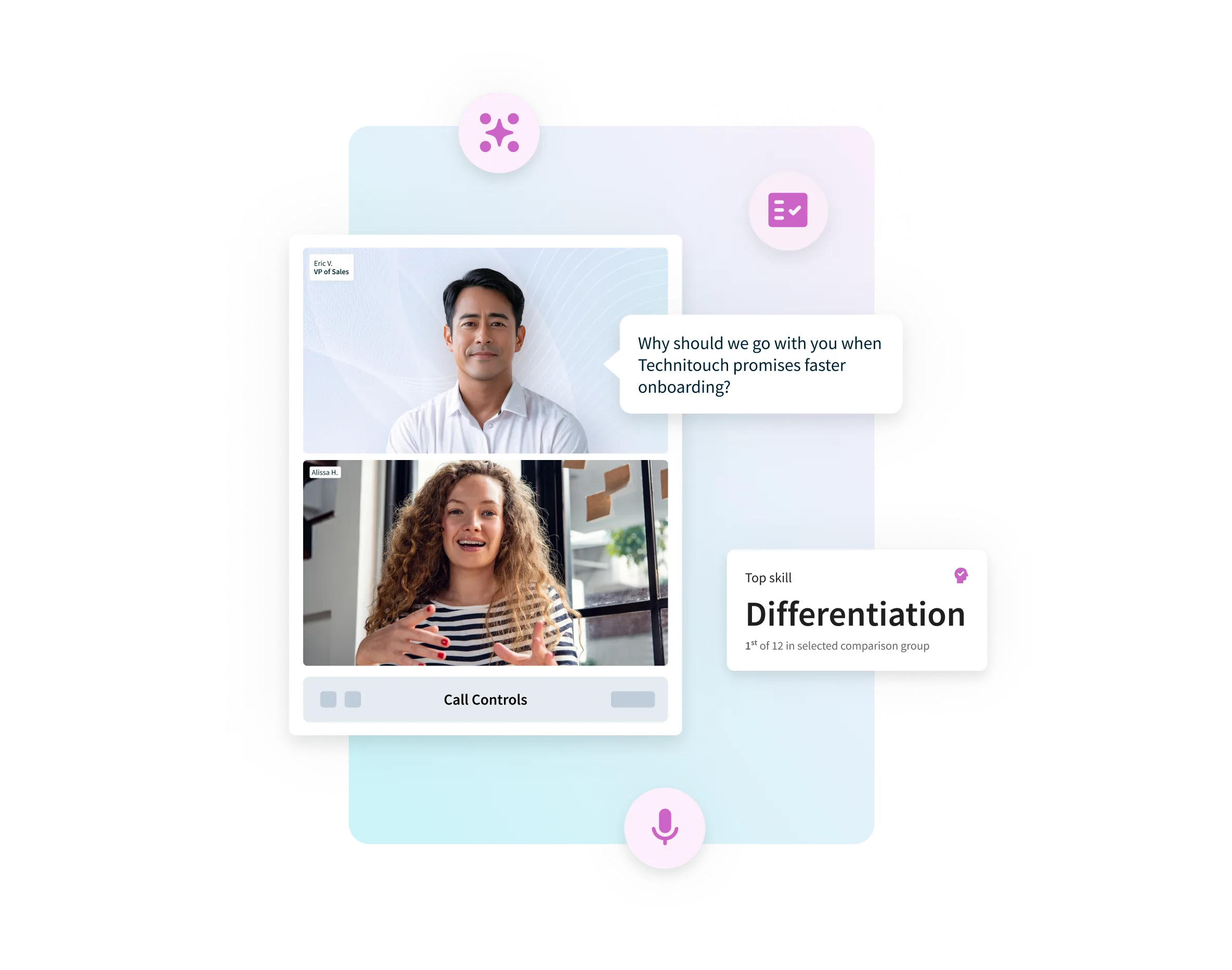 • Persona-specific AI role plays with auto-scoring