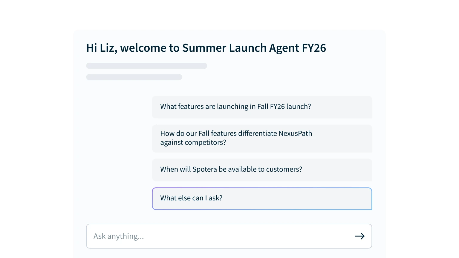 Create custom agents that answer key questions, guide reps in critical moments, and help them win, powered by AI that’s role-aware and grounded in trusted content.