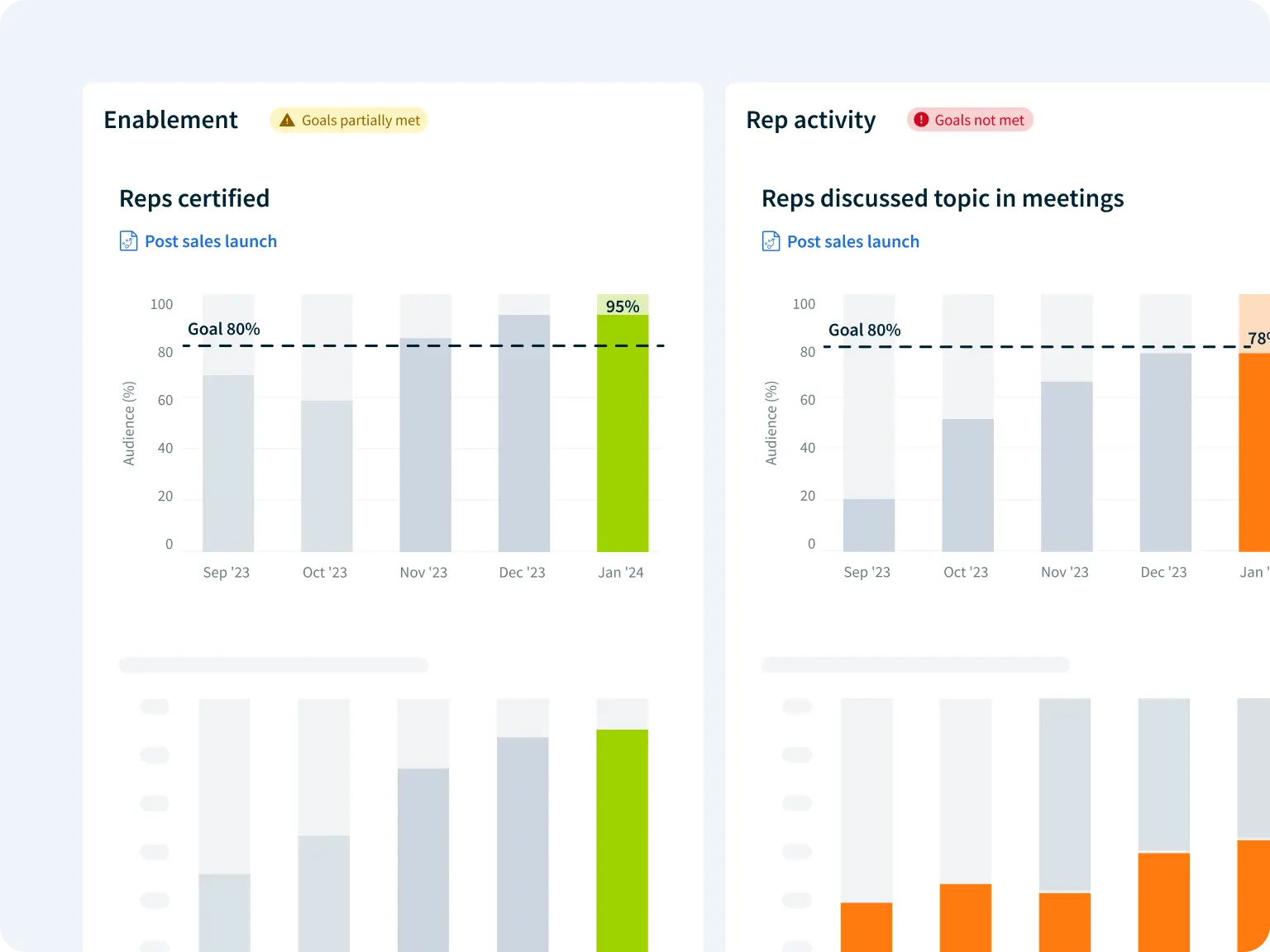 Purpose-built AI helps enablement leaders identify skill gaps and build adaptive learning paths so reps develop the skills that matter and show up confident, prepared, and ready to perform.