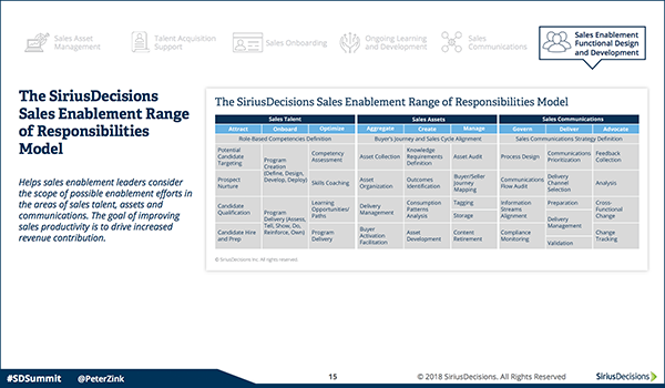 The SiriusDecisions Sales Enablement Range of Responsibilities Model: